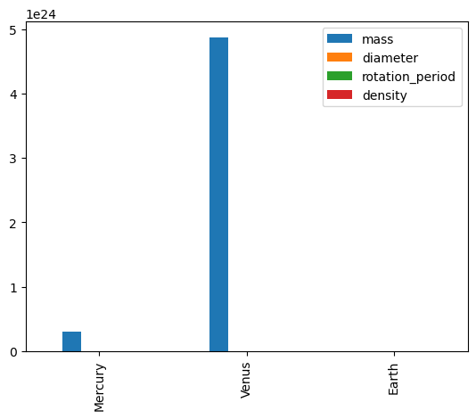 everyone = df.reindex(['Mercury', 'Venus', 'Earth', 'Mars'])