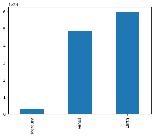 masses.loc['Mercury':'Earth']Mercury 3.000000e+23