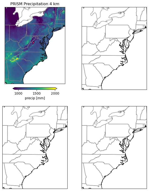 ax[0,0].set_title('PRISM Precipitation 4 km')