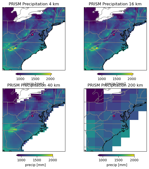 ax[1,1].set_title('PRISM Precipitation 200 km')